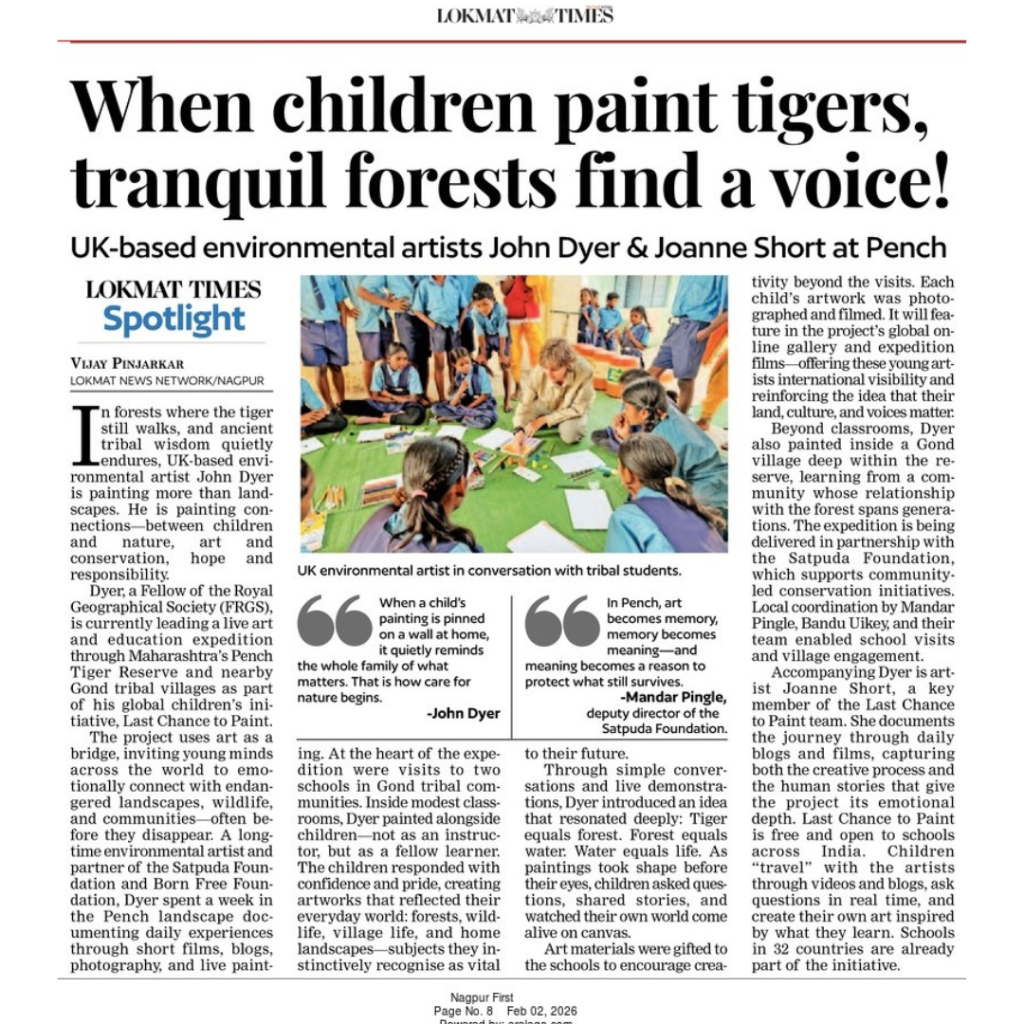 In January 2026, SLTP partner Satpuda Foundation collaborated with UK based environmental artists John Dyer and Joanne Short to conduct art workshops for school children living around Pench Tiger Reserve, Maharashtra, spreading the message of conservation.