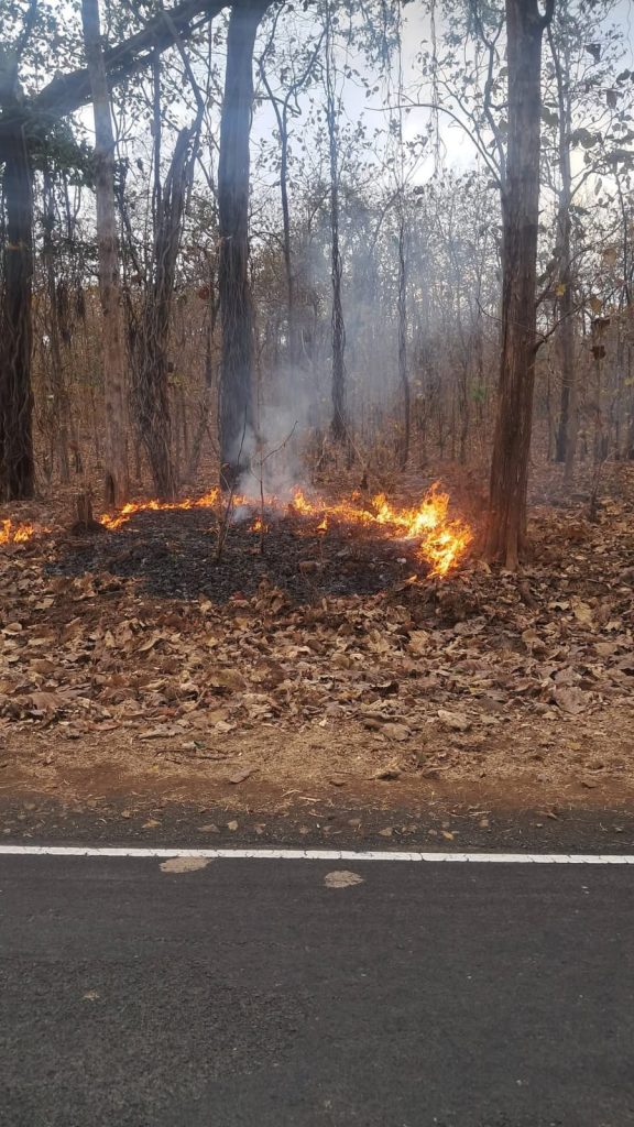 “While traveling from Semadoh to Harisal in Melghat, I noticed someone lighting a fire by the roadside and fleeing away. Considering the likely damage in tiger reserve, I immediately informed the local Forest Department  Range Office. Further ahead near Kolkas, I spotted another freshly lit fire, which I extinguished right away without waiting for anyone. I saw that someone ahead had lit it and moved on, unaware that I was coming behind them to put it out. This miscreant was deliberately putting the forest on fire, maybe for some petty benefits. My appeal to all nature lovers traveling through Melghat, if you see such wildfires, please help extinguish them immediately. Such small efforts can prevent major damage.”